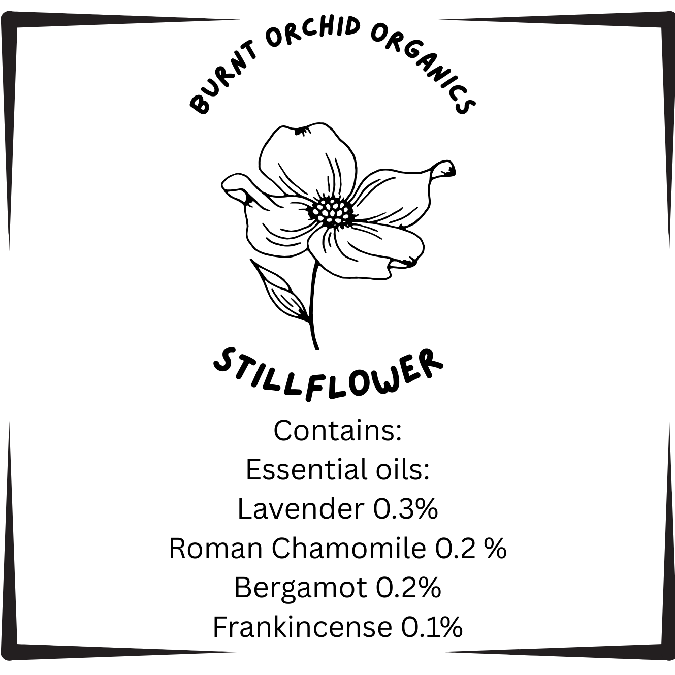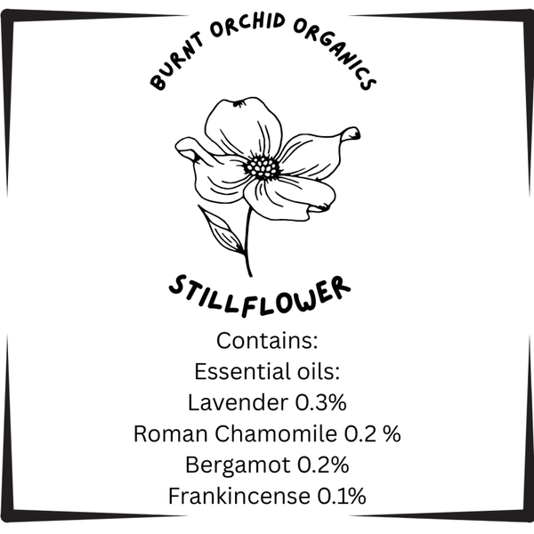 Stillflower: Chamomile and frankincense cradle the senses in a hush of comfort, perfect for twilight rituals and tender rest. Contains Lavender, Chamomile, Bergamot and Frankincense.