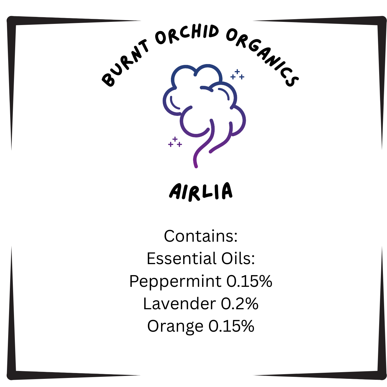Airlia: A spray to support comfort in breathing: Avoid direct inhalation: Contains : Peppermint, Lavender and Mandarin