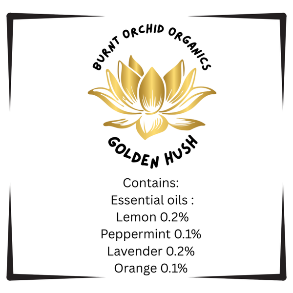 Golden Hush: A gentle spray to support feelings of nausea. Contains: Lemon, Peppermint, Lavender, Mandarin